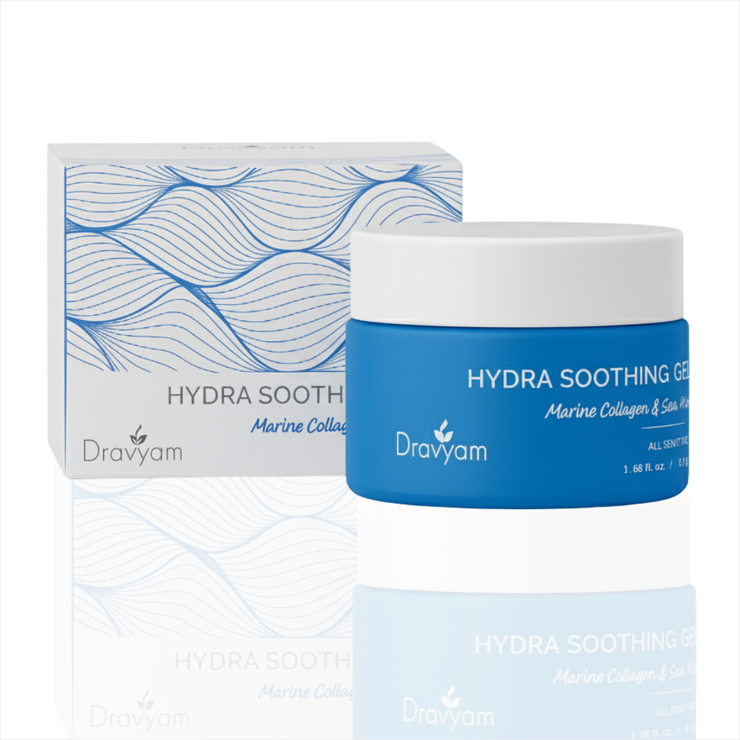 At Dravyam, we believe in science-backed skincare that delivers visible results. Our Hydra Collagen Gel is powered by Marine Collagen and Sea Kale, ingredients known to deeply hydrate, restore elasticity, and protect the skin barrier.